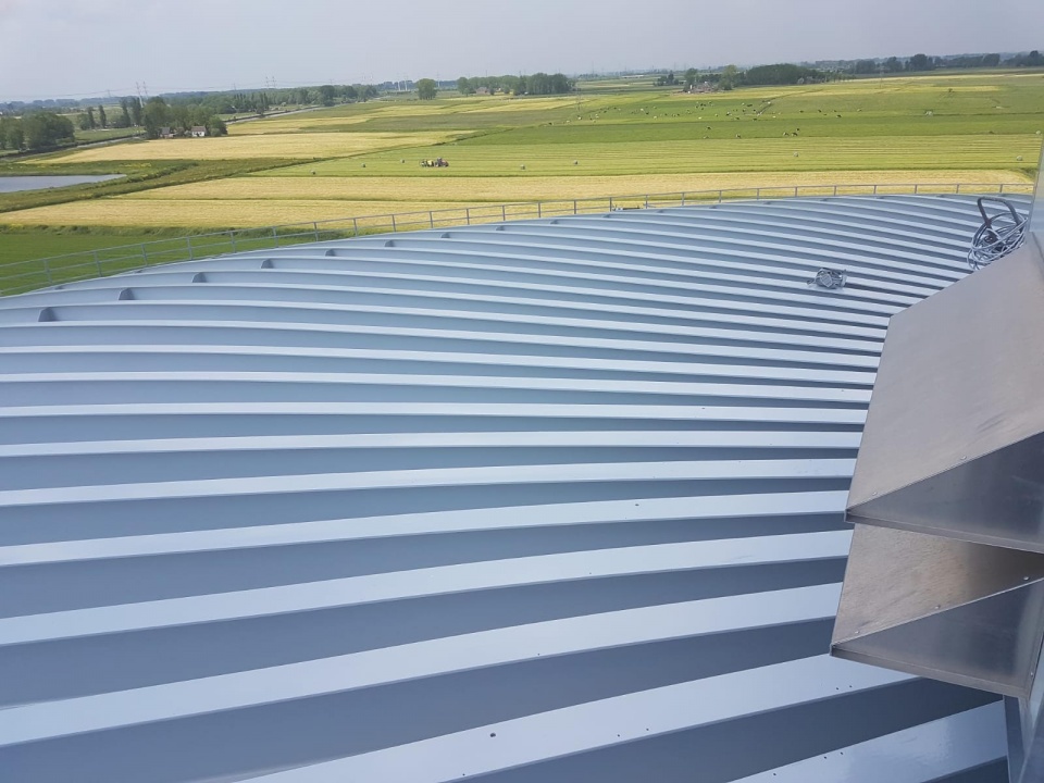 This storage silo of a total of 10,000 m2 has been fitted with a 3-layer coating system of PPG at the client's location, with the high-quality sigmadur 1800 as a final layer.